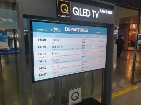 이것 말고도 역사 내 맞이방에 설치된 대형 전광판이나 TV 형태의 화면을 통해서도 구매한 열차 번호를 보고 탑승할 승강장 번호를 볼 수 있습니다(아래 이미지 참고, 사진은 네이버 검색으로 가져왔습니다). 수원 가는 서울행 무궁화호 탑승 승강장은 13번 입니다(그래도 확인하고 타세요!).
