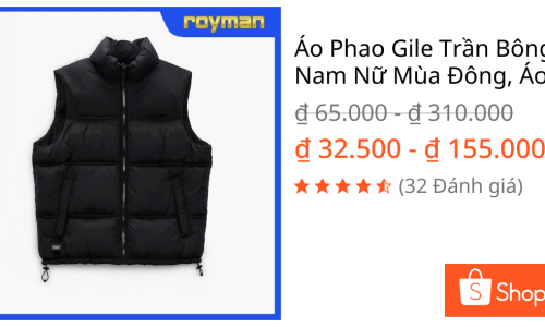 안녕하세요. 하기 베트남 온라인 쇼핑몰 '베트남 쇼피'에 있는 조끼 패딩 한번 참고해보세요^^