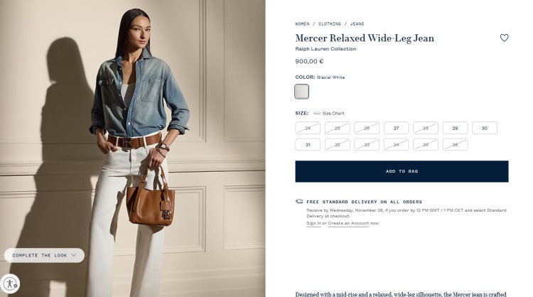 문의하신 제품은 폴로랄프로렌, Mercer Relaxed Fit Wide Leg Jeans 입니다.