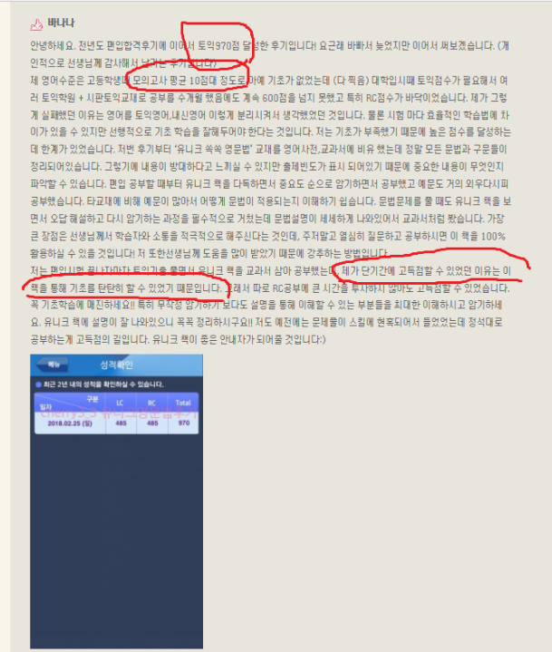 유학파 토익 강사들이 만점을 취득하기 위해서 무엇으로 공부하는지 읽어보세요. 토익은 해석방법/ 영어 속독법과 문맥을 통한 어휘 유추능력을 기르고 유형별 정답을 찾는 법을 공부하면 바로 고득점 취득 합니다. 다음 학생들 얼마나 단기간에 성적이 어떻게 변하는지 분석해보세요.
