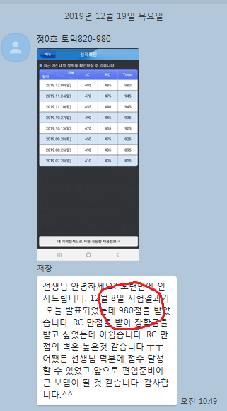 성적표와 함께 토익 후기는 (10)번에 있으니, 살펴보시고, 허송세월을 보내지 않고 초고속으로 고득점을 성취하고자 한다면 [카톡 상담 요령]이 있으니 살펴보세요.