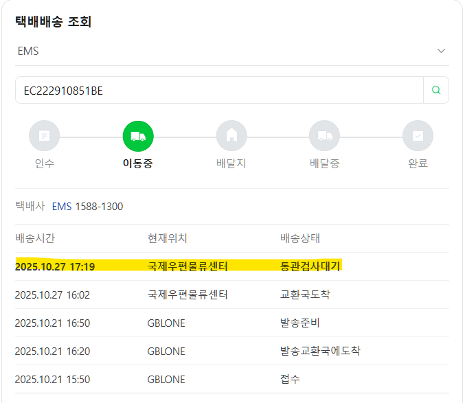 해외배송 추적문의 첼시공홈에서 유니폼을 시켰는데 한국에 도착한지 한달이 넘어도 소식이 없어서요 조회할수있을까요?