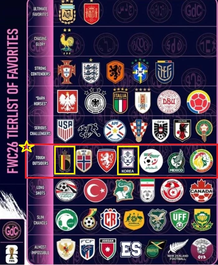 * Long Shots (가능성 낮지만 시도해 볼 만한): 이집트, 튀르키예, 코트디부아르, 이란, 튀니지, 캐나다