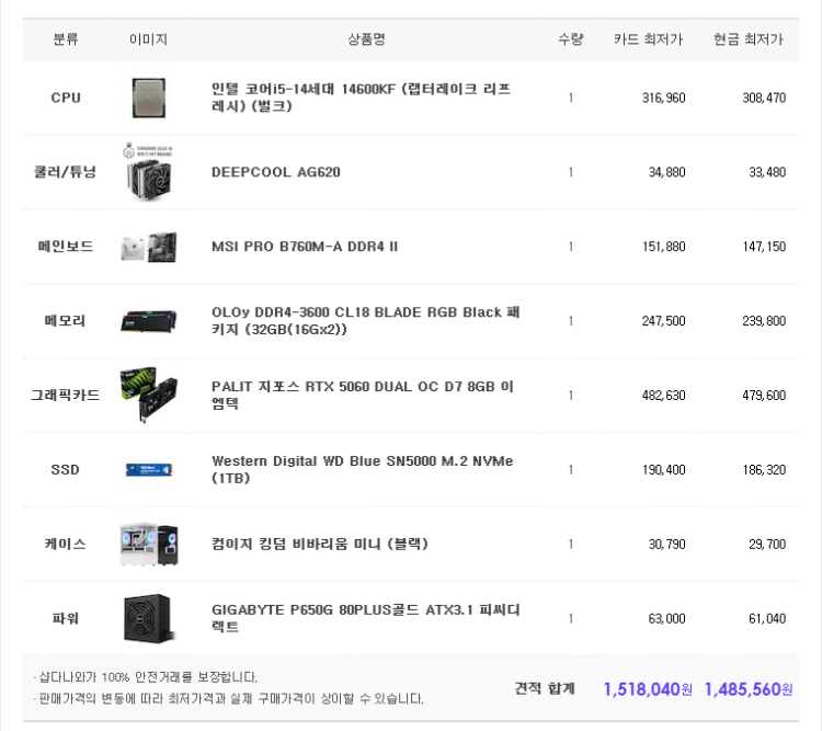 – 택배비, 조립비 등 모든 비용이 포함된 총 견적 금액을 꼭 확인하고 타사와 비교하세요.
