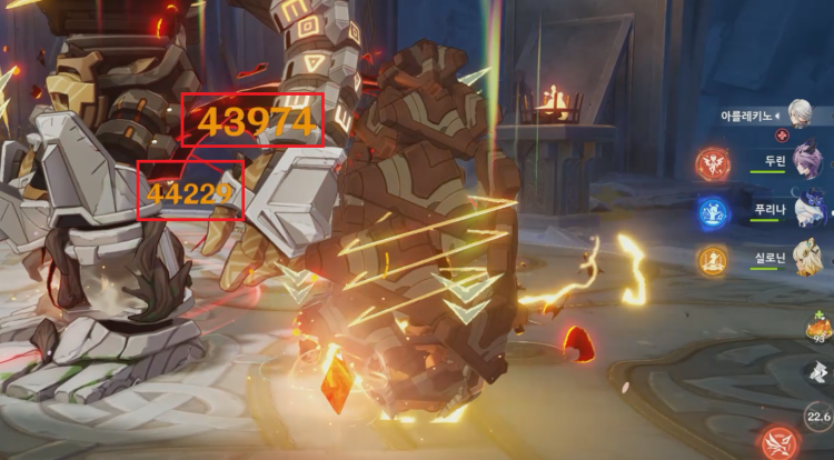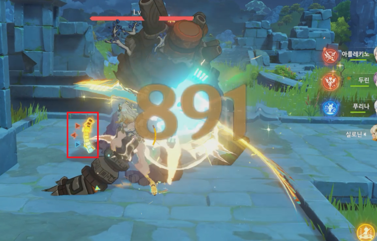 그래서 내성깍 발동 방법은 파티네 다른 원소 캐릭터 2인이상(불,물,번개,얼음 원소중)을 배치한후