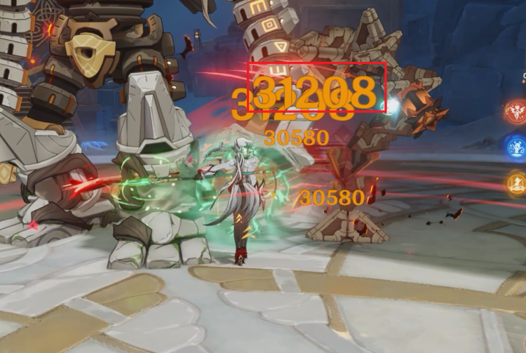 위 스샷이 실로닌의 내성깍 버프를 받고 나온 아를레키노 딜 입니다