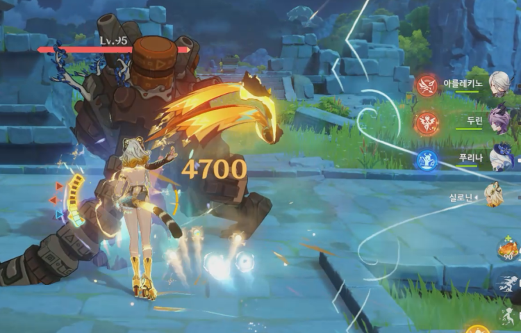 실로닌 고유특성 "네토틸리즈틀리"를 통해 파티내 4대원소 캐릭터(불,물,번개,얼음)가