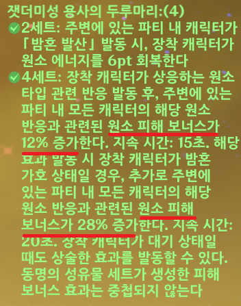 다시한번 자세히 설명 드리자면 파티에 불,물,번개,얼음 원소 캐릭터중