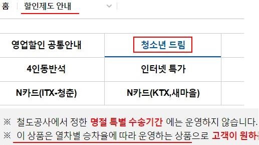예전에는 청소년드림 할인이되는 KTX가 제법 많았지만
