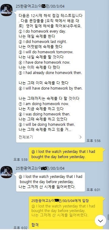주어+동사로 잘 모르는 한광여고 3학년 9등급(7점) 학생 3개월 수강하여 중간고사 73.8점