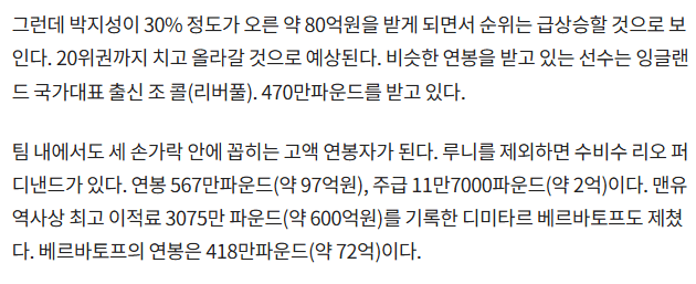 의외로 잘 모르는 박지성 맨유 시절 연봉